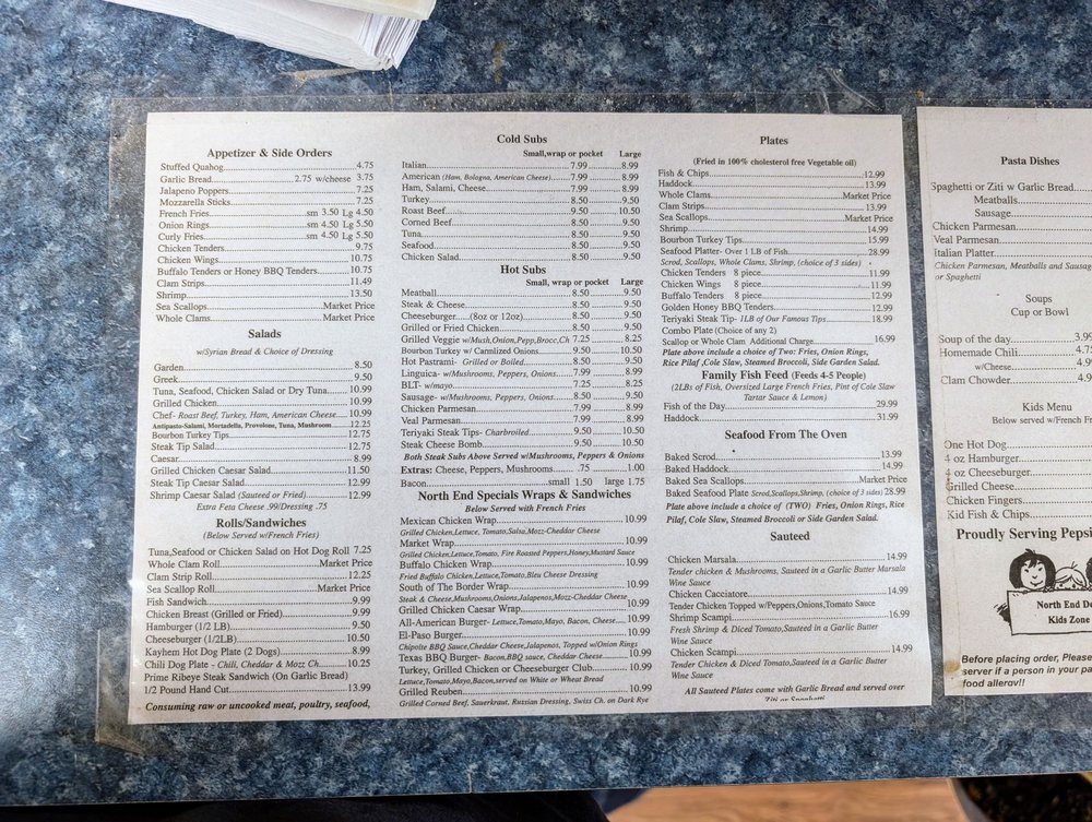 North End Market & Deli is a versatile eatery located at 1123 N Main St in Brockton, MA. Specializing in deli sandwiches, pizza, and salads, this spot offers a range of appetizers, salads, and rolls. Some standout items include the Buffalo Tenders, Mozzarella Sticks, Garden Salad, Steak Tip Salad, Seafood Roll, and the unique Chili Dog Plate Sandwich. With options for delivery, takeout, and reservations, this deli is a great choice for groups and families. The ambiance features outdoor seating, free Wi-Fi, and TVs. The moderate noise level is perfect for casual dining. Whether you're in the mood for a hearty sandwich or a fresh salad, North End Market & Deli has something for everyone.